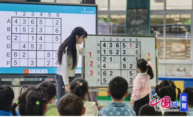 近日,乐山市机关幼儿园开展趣味数独特色活动,全园师幼积极参与,让孩子们在方格游戏中锻炼逻辑思维能力。