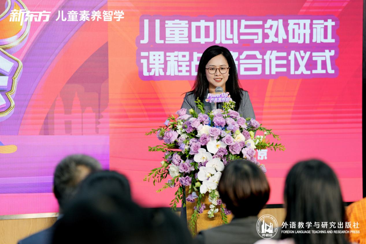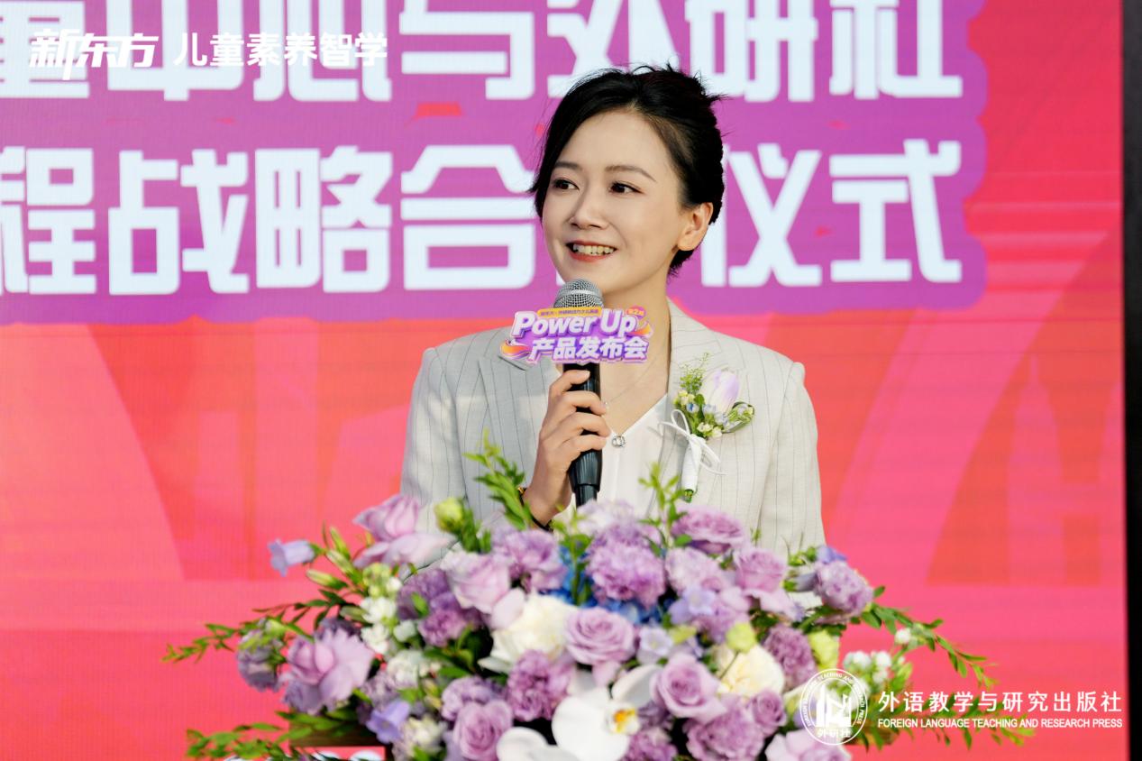 新东方儿童素养智学推广管理中心总经理傅诗淇在致辞中表示,新东方儿童素养智学聚焦3—12岁儿童素质教育,着力培养孩子语言素养、沟通能力、文化自信与跨文化交流能力,引导青少年用英文讲好中国故事。此次携手外研社,正式引入《外研新动力少儿英语Power Up(第2版)》课程体系,助力中小学生拓展学习、提质增效。新东方将依托三十余年语言教学积淀,以优质师资结合多媒体教学手段,落地《外研新动力少儿英语Power Up(第2版)》与《外研思辨英语青少版》两大核心产品,并作为外研社教学实践示范基地,整合优质教育资源,为孩子打造更高效、更有趣的语言学习体验,全面提升终身素养与核心能力。