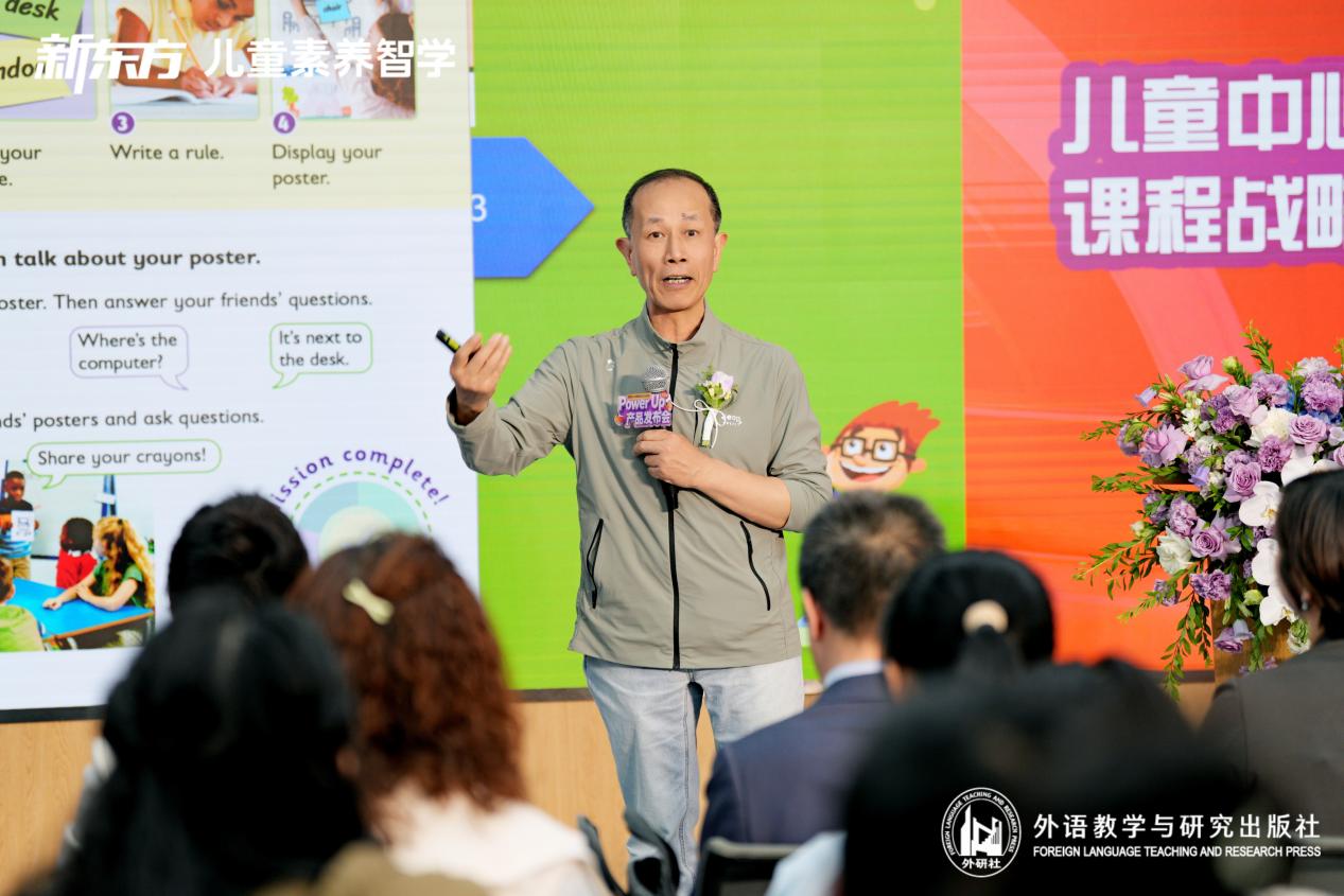 在主编微讲座环节,《外研新动力少儿英语Power Up(第2版)》与《外研思辨英语青少版》主编夏谷鸣带来了深入的学术分享。他系统解析两套教程的精准定位、完整体系与科学教学逻辑,深入阐释《外研新动力少儿英语Power Up(第2版)》“语言与素养并重,双框架驱动成长”的核心理念。夏谷鸣强调,课堂教学应以真实任务为引领,在活动中提升学生语言表达能力,并依托跨学科与文化拓展板块,全面培养学生终身胜任力。