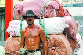 “板车哥”劲爆肌肉窜红网络 完胜犀利哥(组图)
