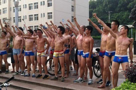 高校男生集体穿超人内裤校园裸奔 网上召集同伴